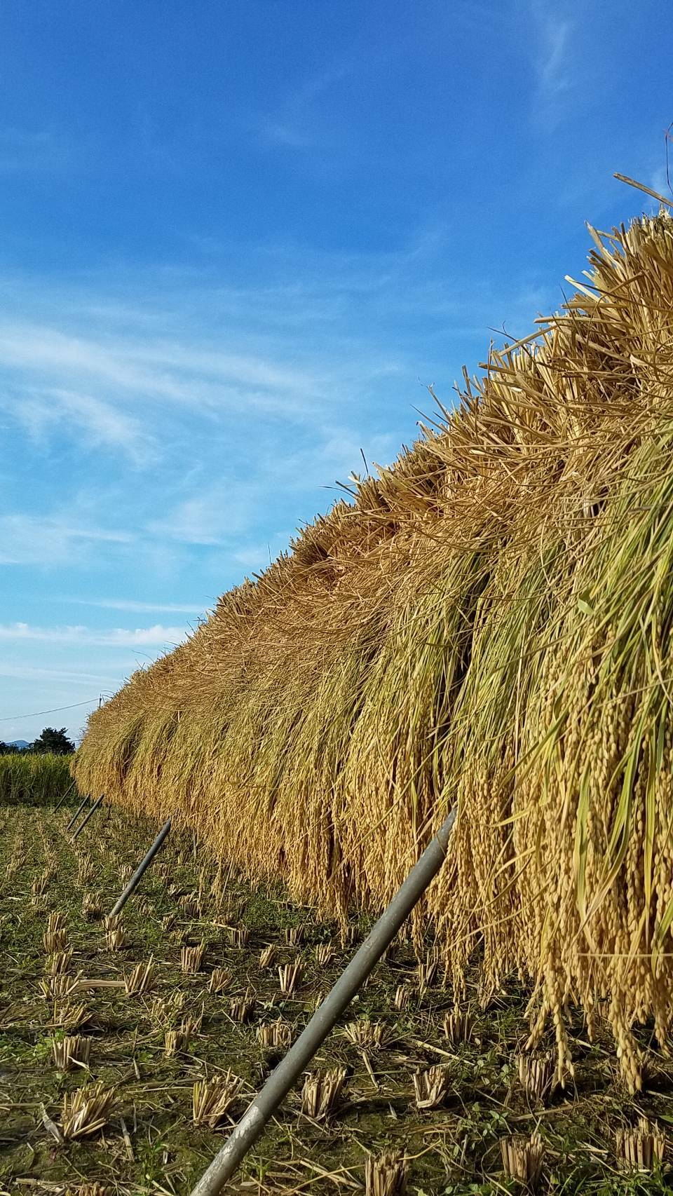 稲刈り後に畑に置いて、